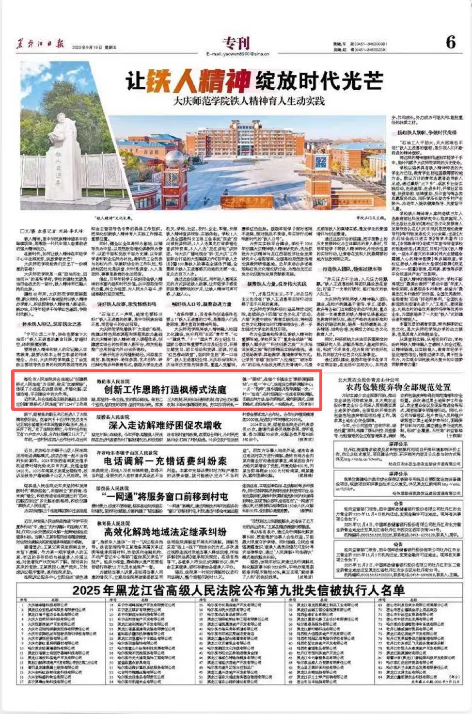 《黑龙江日报》报道海伦市人民法院:创新工作思路打造枫桥式法庭