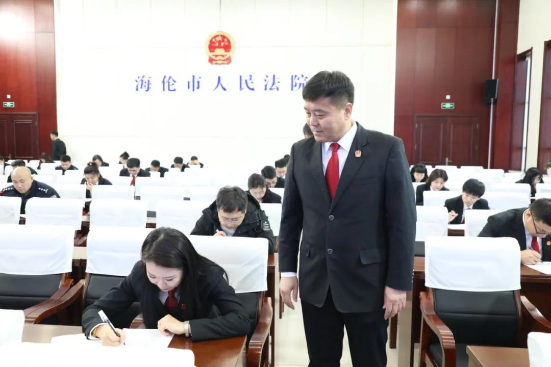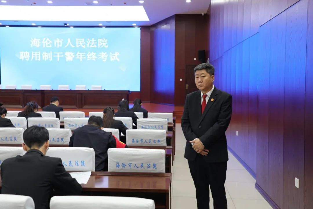 为持续提升聘用制干警队伍的职业素养与履职能力,推动队伍整体素质和工作效能稳步提升,近日,海伦市人民法院组织开展2025年度聘用制干警年终考核测试。政治部工作人员全程现场监督,党组书记、院长王研及全体班子成员到场巡考,全体聘用制干警均参加本次考核。