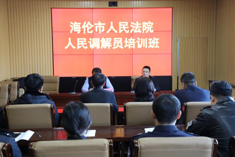 为了进一步加大人民调解平台的应用力度,提升人民调解员法律素质和调解业务能力水平,充分发挥人民调解员在多元解纷机制中的重要作用,推动矛盾纠纷多元化解工作再登新台阶。12月10日,海伦法院联合司法局组织开展人民调解员业务技能培训班,这是今年度疫情缓解之后的首次全市人民调解员业务培训在海伦法院执行指挥中心举行,本次业务技能培训采用审判实践及业务培训讲座相结合的模式,助力一站式多元化纠纷解决机制建设,促进矛盾源头化解,全市20余名人民调解员参加了培训。此次业务技能培训班是由审判委员会委员、立案庭庭长李福坤同志主持的集中式业务培训讲座,人民调解员石松冶同志就“人民调解平台”展开讲解,员额法官张伟宁同志针对音视频部分进行重点培训。